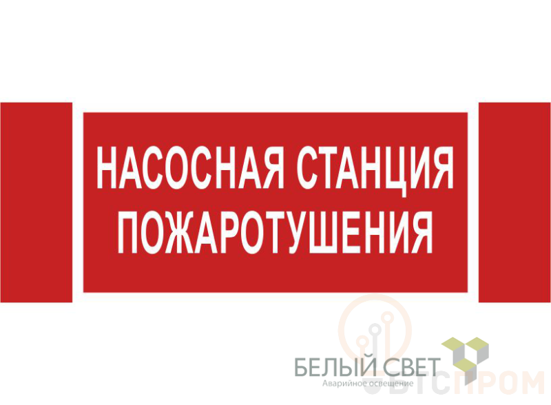 Знак безопасности "Насосная станция пожаротушения" габаритные размеры 340х125 мм, фактические размеры 250х125 мм, сигнальный цвет - красный, контрастный цвет - белый