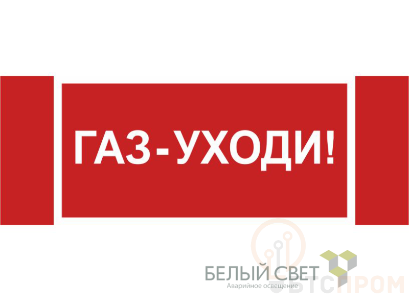 Знак безопасности "Газ – уходи!" габаритные размеры 340х125 мм, фактические размеры 250х125 мм, сигнальный цвет - красный, контрастный цвет - белый