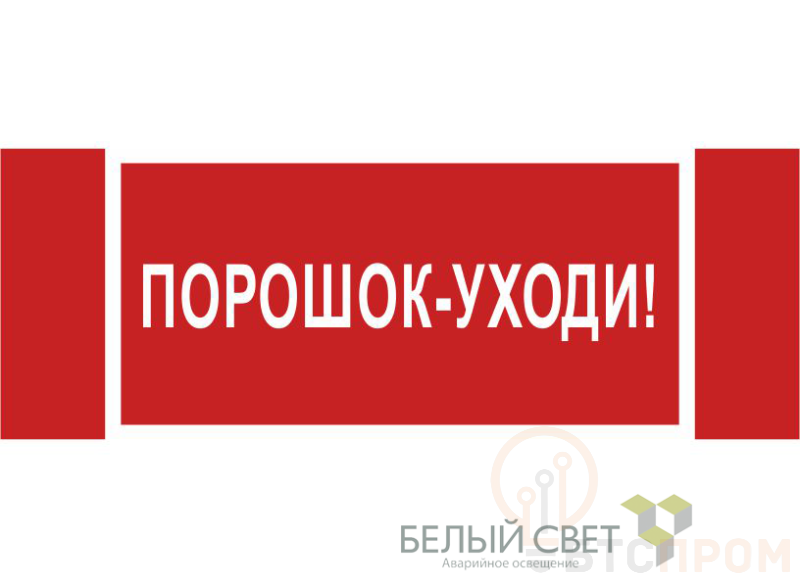 Знак безопасности "Порошок – уходи!" габаритные размеры 340х125 мм, фактические размеры 250х125 мм, сигнальный цвет - красный, контрастный цвет - белый