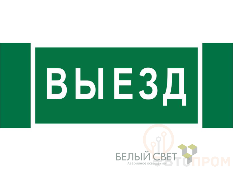Знак безопасности "Указатель выезда" габаритные размеры 340х125 мм, фактические размеры 250х125 мм, сигнальный цвет - зеленый, контрастный цвет - белый
