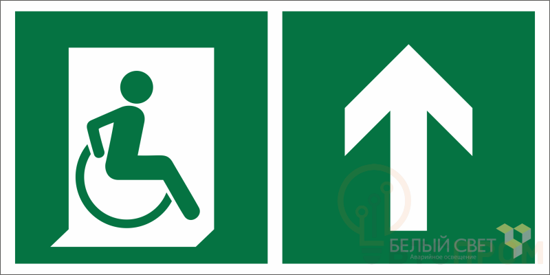 Знак безопасности "Направление движения к эвакуационному выходу МГН прямо" габаритные размеры 600х300 мм, фактические размеры 600х300 мм, сигнальный цвет - зеленый, контрастный цвет - белый