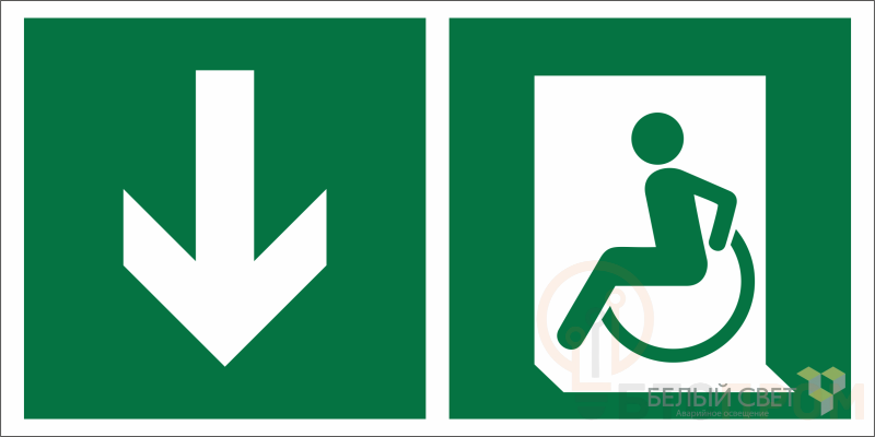 Знак безопасности "Указатель двери эвакуационного выхода (левосторонний) для МГН" габаритные размеры 600х300 мм, фактические размеры 600х300 мм, сигнальный цвет - зеленый, контрастный цвет - белый