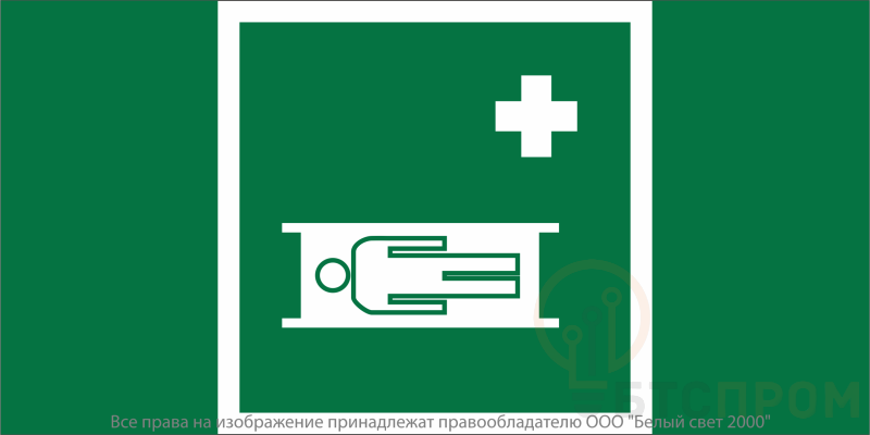 Знак безопасности "Средства выноса (эвакуации) пораженных" габаритные размеры 600х300 мм, фактические размеры 300х300 мм, сигнальный цвет - зеленый, контрастный цвет - белый