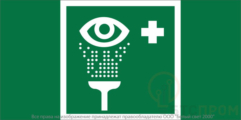 Знак безопасности "Пункт обработки глаз" габаритные размеры 600х300 мм, фактические размеры 300х300 мм, сигнальный цвет - зеленый, контрастный цвет - белый
