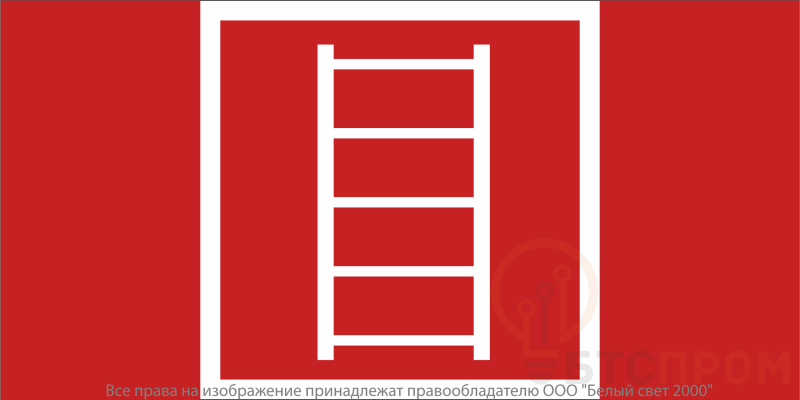 Знак безопасности "Пожарная лестница" габаритные размеры 600х300 мм, фактические размеры 300х300 мм, сигнальный цвет - красный, контрастный цвет - белый