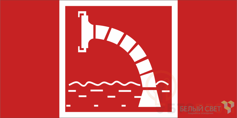 Знак безопасности "Пожарный водоисточник" габаритные размеры 600х300 мм, фактические размеры 300х300 мм, сигнальный цвет - красный, контрастный цвет - белый