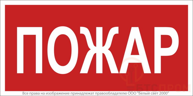 Знак безопасности "Пожар" габаритные размеры 600х300 мм, фактические размеры 600х300 мм, сигнальный цвет - красный, контрастный цвет - белый