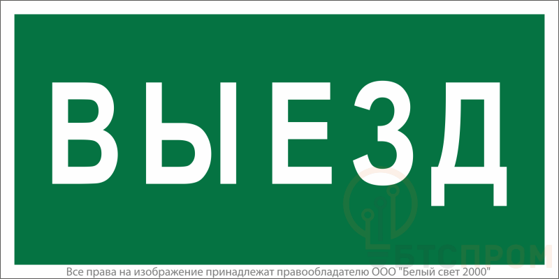 Знак безопасности "Указатель выезда" габаритные размеры 600х300 мм, фактические размеры 600х300 мм, сигнальный цвет - зеленый, контрастный цвет - белый