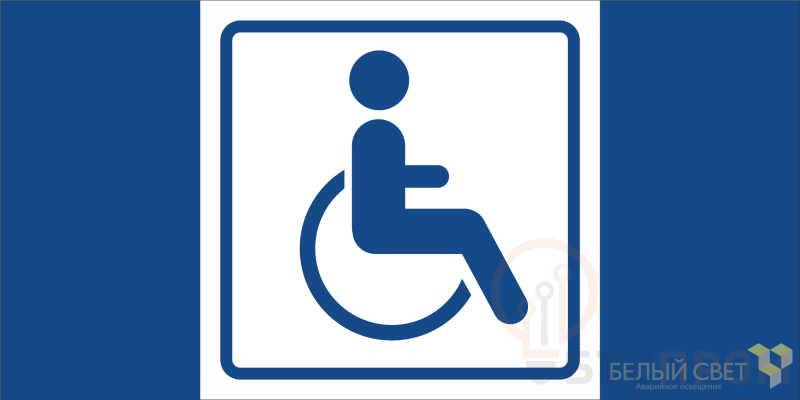 Знак безопасности "Символы доступности для инвалидов в креслах колясках" габаритные размеры 700х350 мм, фактические размеры 350х350 мм, сигнальный цвет - белый, контрастный цвет - синий