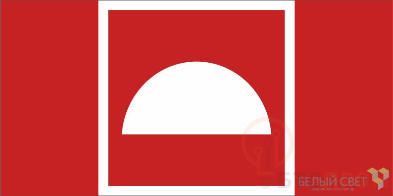 Знак безопасности "Место размещения нескольких средств противопожарной защиты" габаритные размеры 700х350 мм, фактические размеры 350х350 мм, сигнальный цвет - красный, контрастный цвет - белый