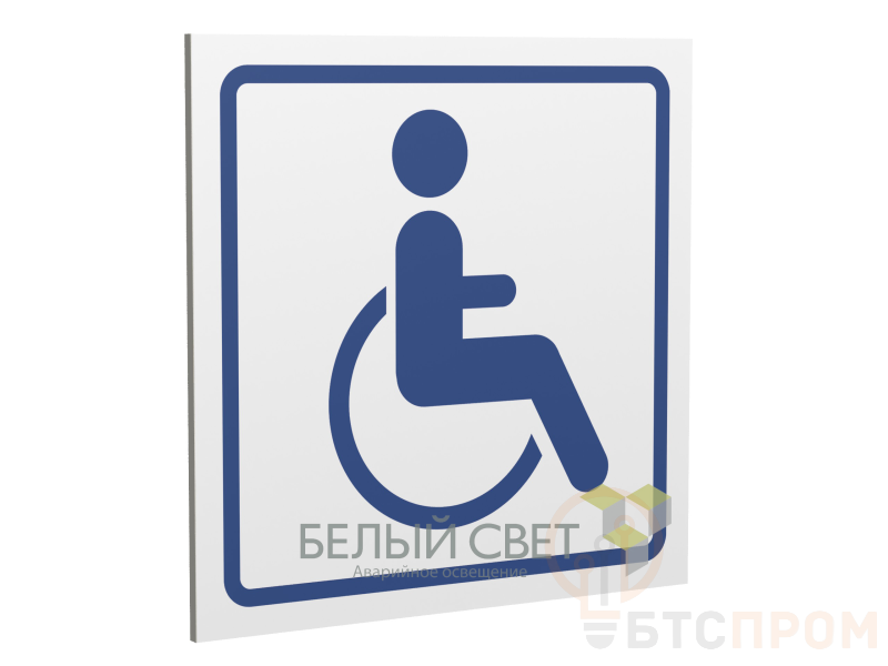 Знак безопасности "Символы доступности для инвалидов в креслах колясках", габаритные размеры 173х173 мм, фактические размеры 150х150 мм, сигнальный цвет - белый, контрастный цвет - синий