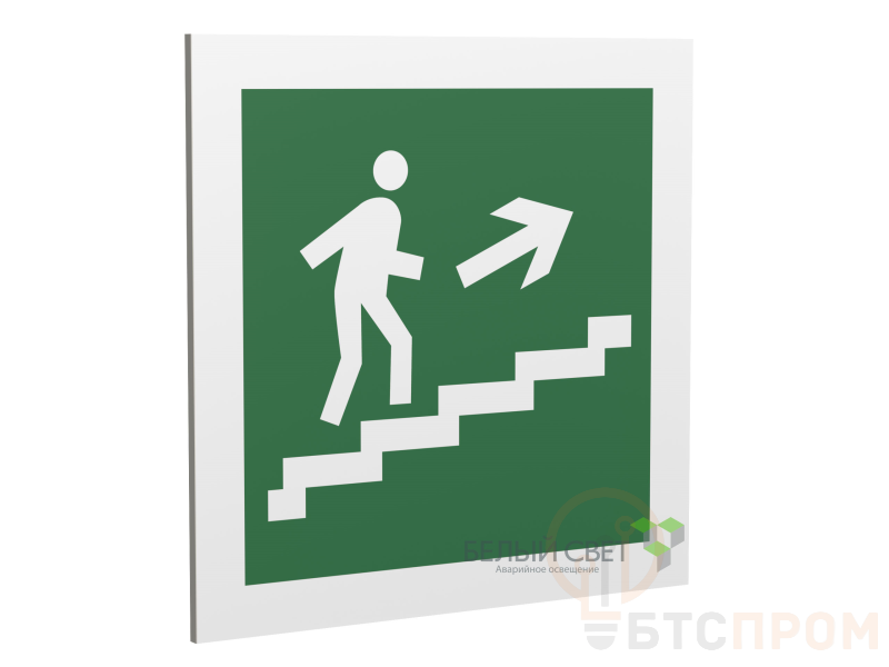 Знак безопасности "Направление к эвакуационному выходу по лестнице вверх", габаритные размеры 173х173 мм, фактические размеры 150х150 мм, сигнальный цвет - зеленый, контрастный цвет - белый