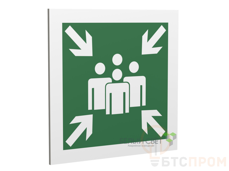 Знак безопасности "Пункт (место) сбора", габаритные размеры 173х173 мм, фактические размеры 150х150 мм, сигнальный цвет - зеленый, контрастный цвет - белый