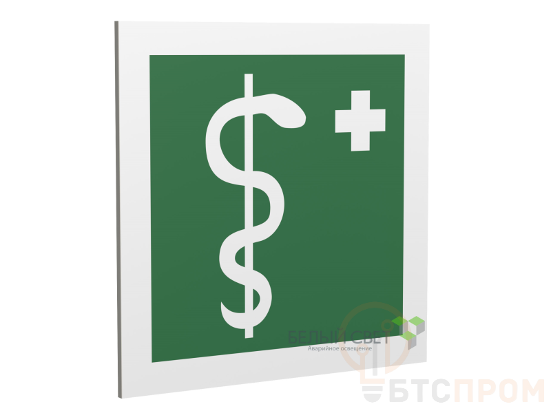 Знак безопасности "Медицинский кабинет", габаритные размеры 173х173 мм, фактические размеры 150х150 мм, сигнальный цвет - зеленый, контрастный цвет - белый