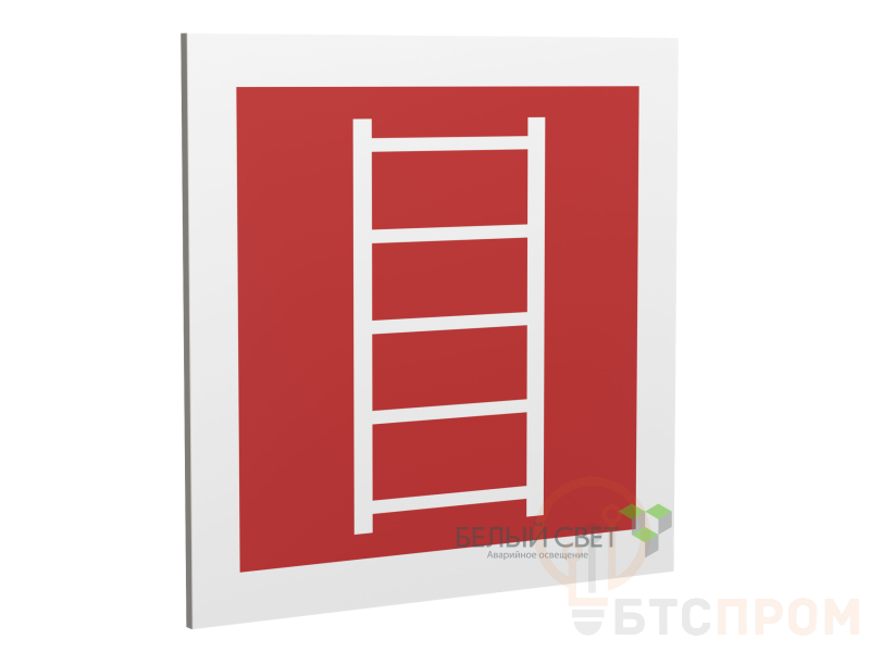 Знак безопасности "Пожарная лестница", габаритные размеры 173х173 мм, фактические размеры 150х150 мм, сигнальный цвет - красный, контрастный цвет - белый
