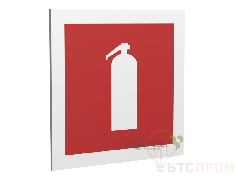 Знак безопасности "Огнетушитель", габаритные размеры 173х173 мм, фактические размеры 150х150 мм, сигнальный цвет - красный, контрастный цвет - белый