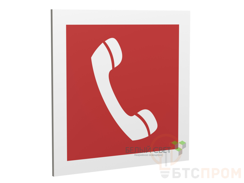 Знак безопасности "Телефон для использования при пожаре (в том числе телефон прямой связи с пожарной охраной)", габаритные размеры 173х173 мм, фактические размеры 150х150 мм, сигнальный цвет - красный, контрастный цвет - белый
