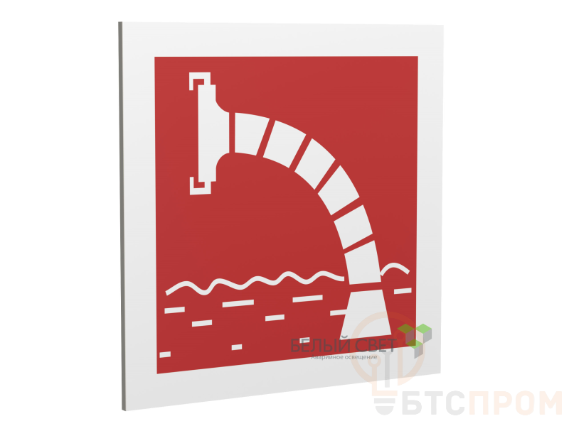Знак безопасности "Пожарный водоисточник", габаритные размеры 173х173 мм, фактические размеры 150х150 мм, сигнальный цвет - красный, контрастный цвет - белый