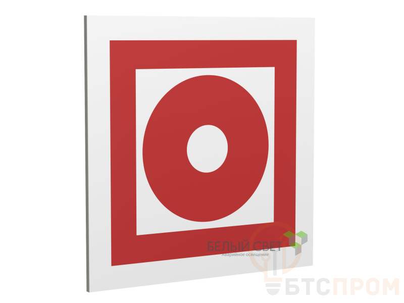 Знак безопасности "Кнопка включения установок (систем) пожарной автоматики", габаритные размеры 173х173 мм, фактические размеры 150х150 мм, сигнальный цвет - красный, контрастный цвет - белый