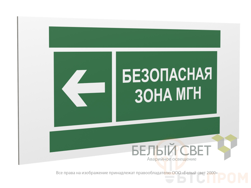 Знак безопасности PP-36162.E67 "Направление движения к безопасной зоне МГН налево" Белый свет a20753