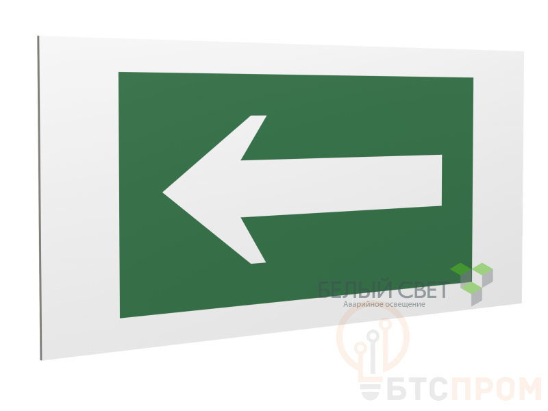 Знак безопасности "Направляющая стрелка", габаритные размеры 360х160 мм, фактические размеры 280х140 мм, сигнальный цвет - зеленый, контрастный цвет - белый