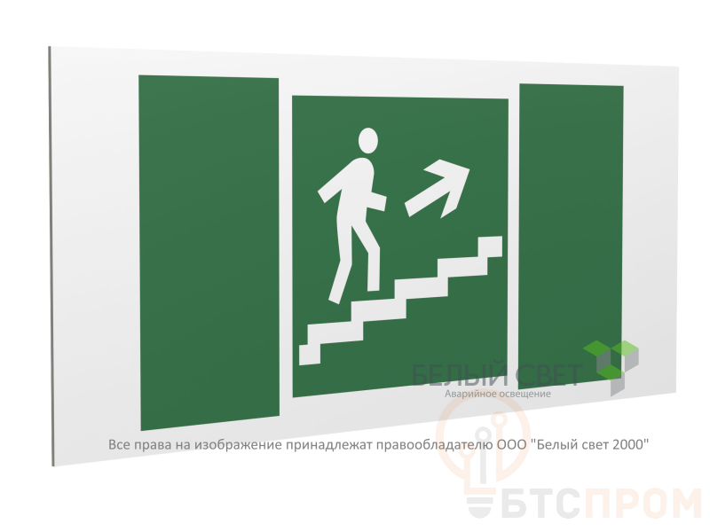 Знак безопасности PP-40205.E15 "Направление к эвакуационному выходу по лестнице вверх (прав.)" Белый свет a20790