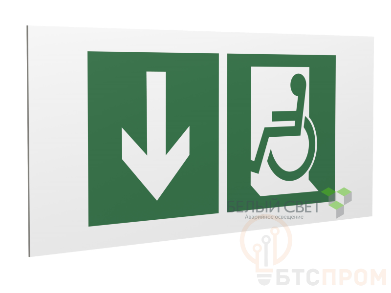 Знак безопасности "Указатель двери эвакуационного выхода (левосторонний) для МГН", габаритные размеры 418х218 мм, фактические размеры 400х200 мм, сигнальный цвет - зеленый, контрастный цвет - белый