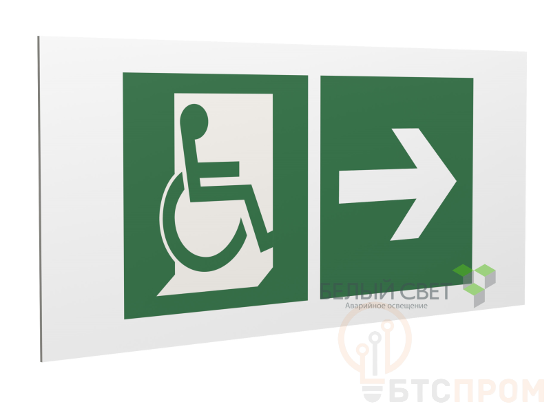 Знак безопасности PP-40205.E73"Напр. движения к эвакуац. выходу МГН направо" Белый свет a20804 фото в каталоге от BTSprom.by