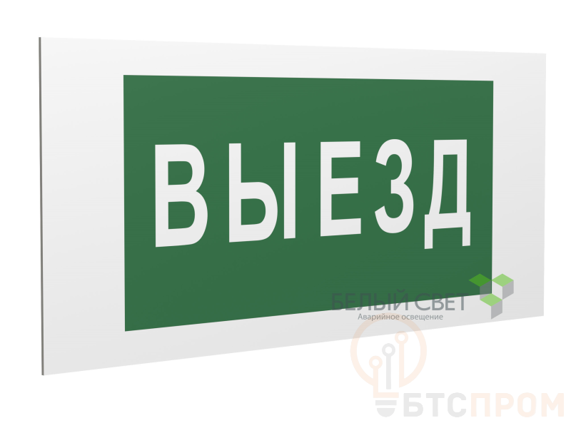 Знак безопасности "Указатель выезда", габаритные размеры 418х218 мм, фактические размеры 400х200 мм, сигнальный цвет - зеленый, контрастный цвет - белый