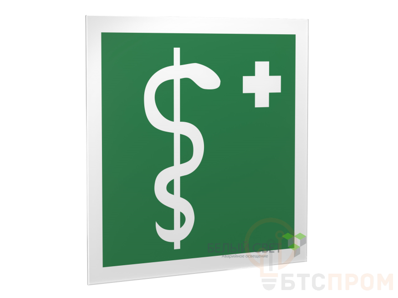 Знак безопасности "Медицинский кабинет", габаритные размеры 150х161 мм, фактические размеры 150х150 мм, сигнальный цвет - зеленый, контрастный цвет - белый