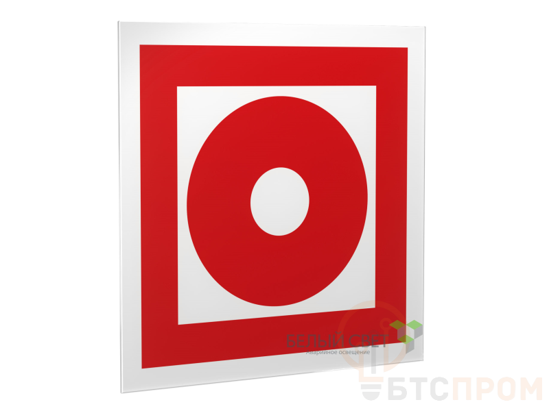 Знак безопасности "Кнопка включения установок (систем) пожарной автоматики", габаритные размеры 150х161 мм, фактические размеры 150х150 мм, сигнальный цвет - красный, контрастный цвет - белый