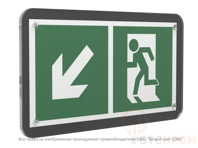 - Надпись: «Напр. к эвакуационному выходу налево вниз».