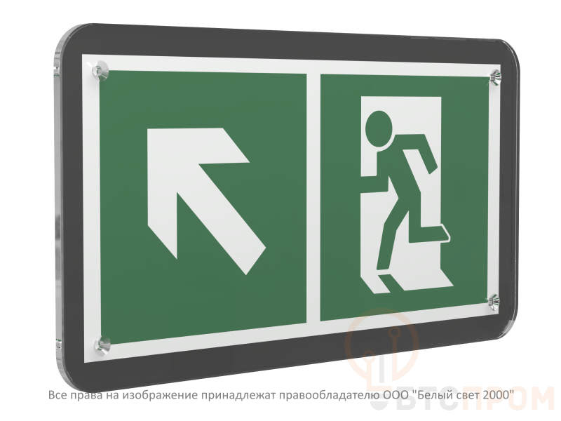 - Назначение: Однозначное указание пути движения к запасному выходу в левую сторону и наверх (например, по лестнице).