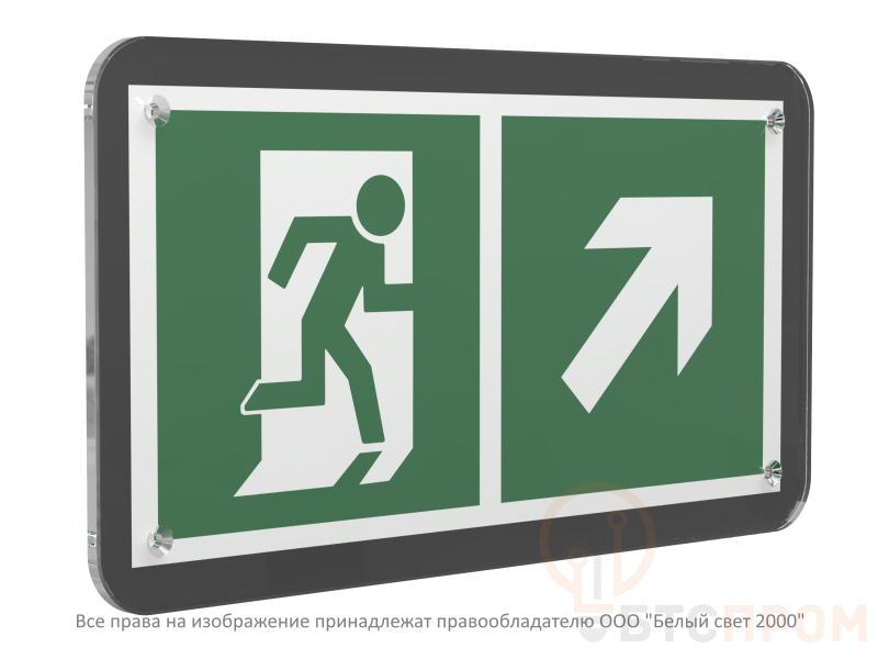 Знак безопасности PS-33186-Black.E37 "Направление к эвакуационному выходу направо вверх" Белый свет a32980