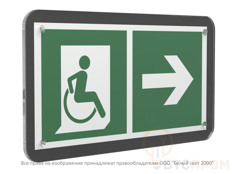 Знак безопасности PS-33186-Black.E73 "Направление движения к эвакуационному выходу МГН направо" Белый свет a32992