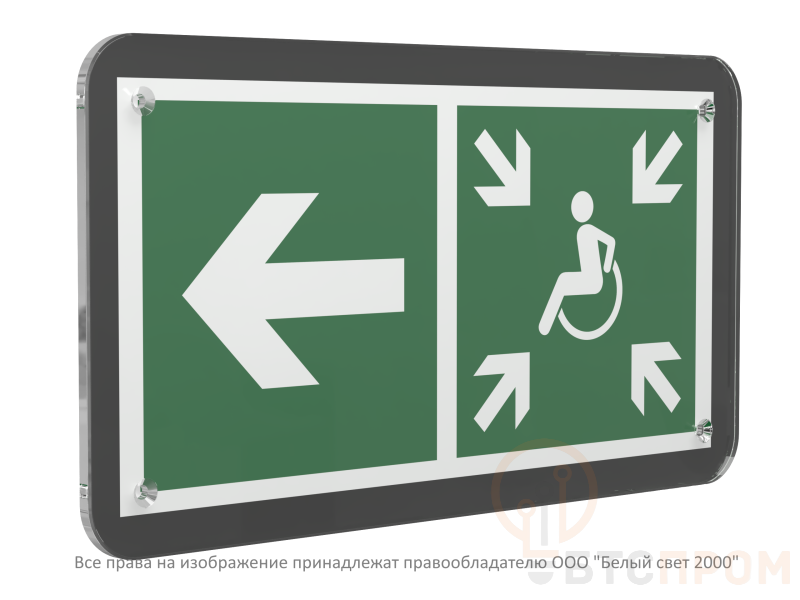 Изделие соответствует требованиям технического регламента и стандартов безопасности. Оно предназначено для монтажа на путях эвакуации в общественных зданиях, таких как торговые центры, больницы, вокзалы, аэропорты, кинотеатры и административные учреждения. Знак используется для обозначения маршрута движения к специально оборудованным пунктам сбора, где маломобильные граждане могут получить помощь при чрезвычайной ситуации. Корпус знака изготавливается из прочных, не поддерживающих горение материалов, что гарантирует долговечность и надежность в эксплуатации.