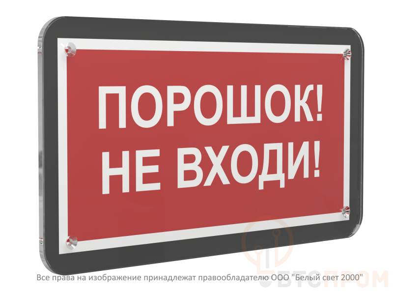 Знак безопасности PS-33186-Black.F25 "Порошок-не входи" предназначен для четкого обозначения зон, в которых хранятся огнетушители и другие средства пожаротушения, запрещая несанкционированное проникновение и обеспечивая их мгременную доступность в случае чрезвычайной ситуации.