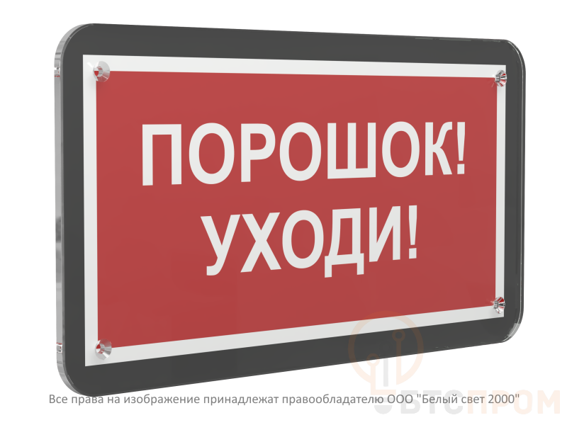 Знак безопасности PS-33186-Black.F26 "Порошок-уходи" предназначен для четкого обозначения мест хранения и применения порошковых огнетушителей. Изделие выполнено в долговечном черном корпусе из прочного пластика, устойчивого к воздействию влаги и ультрафиолета. Символ огнетушителя и надпись "ПОРОШОК-УХОДИ" выполнены в виде контрастной белой световозвращающей пленки, что обеспечивает высокую видимость и распознаваемость знака как в дневное время, так и в темноте при попадании света от фар или фонарей.