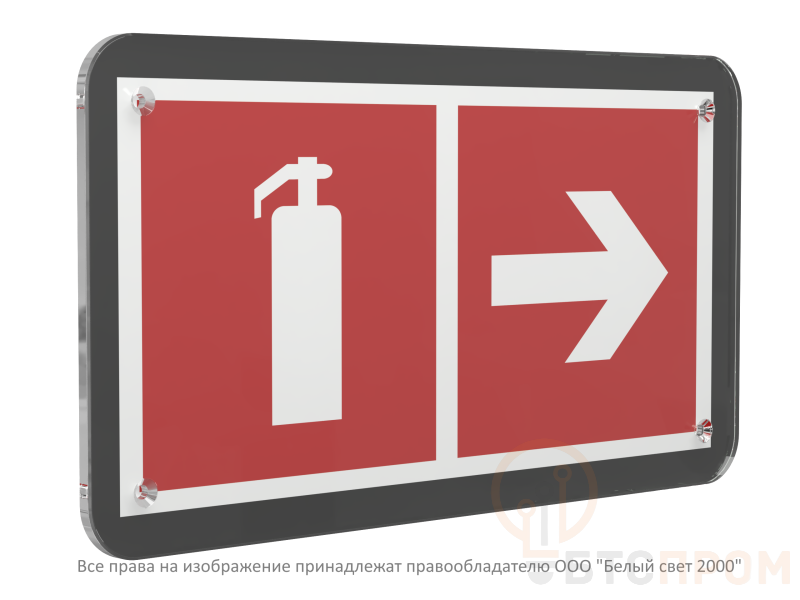 - Цветографика: Четкое черно-белое исполнение с пиктограммой огнетушителя и стрелки, указывающей направление направо.