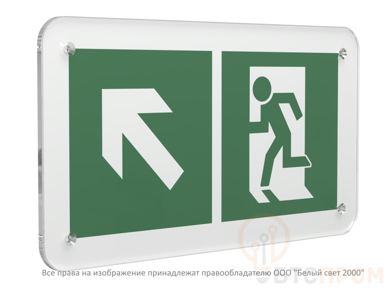 - Дизайн: Четкое графическое изображение бегущего человека и стрелки, направленной налево и вверх, в соответствии с ГОСТ Р 12.4.026-2015 и международными нормами.