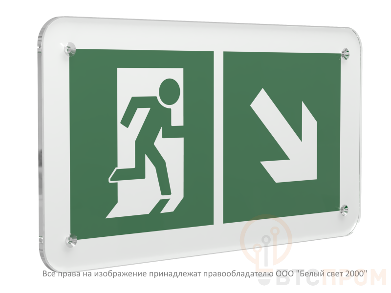 Сфера применения: Знак незаменим в составе системы эвакуационной маркировки на объектах с массовым пребыванием людей: в бизнес-центрах, торговых и развлекательных комплексах, кинотеатрах, гостиницах, больницах, учебных заведениях, а также на промышленных предприятиях и в административных зданиях. Он крепится на стены в коридорах, на лестничных клетках и других ключевых точках для указания точного направления движения к аварийному выходу.