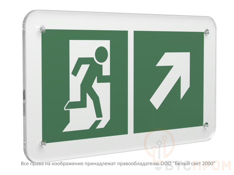 Знак безопасности PS-33186.E37 "Направление к эвакуационному выходу направо вверх" Белый свет a32880