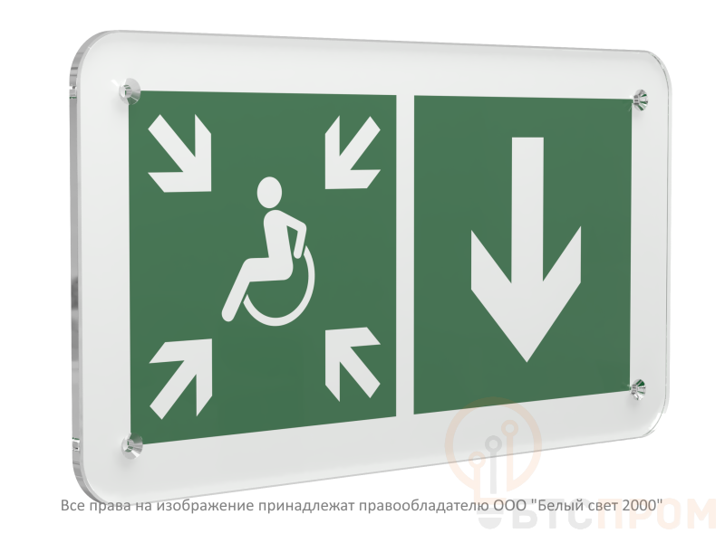 - Назначение: Указатель двери пункта сбора (безопасной зоны) для маломобильных групп населения, правосторонний.