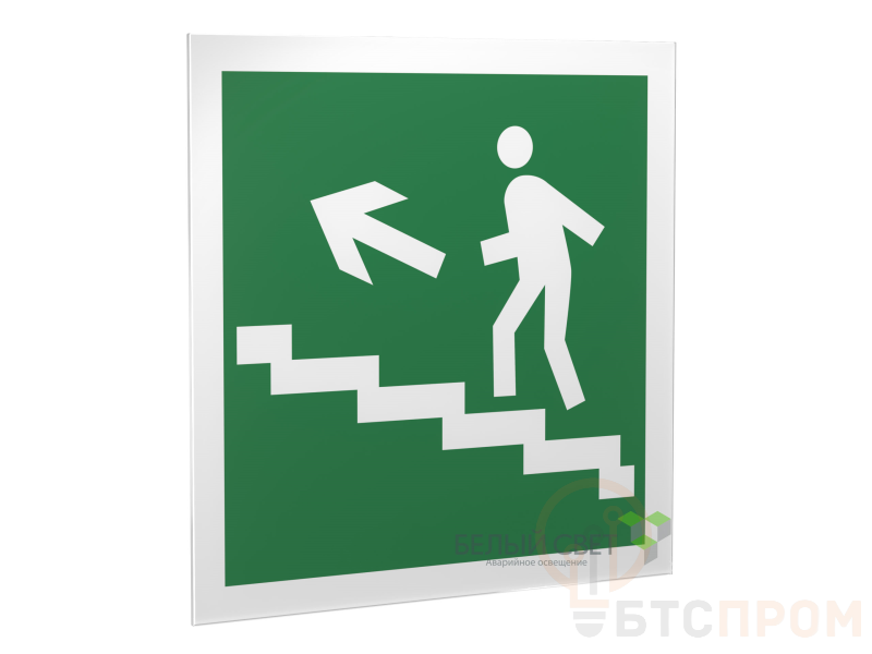 Знак безопасности "Направление к эвакуационному выходу по лестнице вверх", габаритные размеры 324х324 мм, фактические размеры 300х300 мм, сигнальный цвет - зеленый, контрастный цвет - белый
