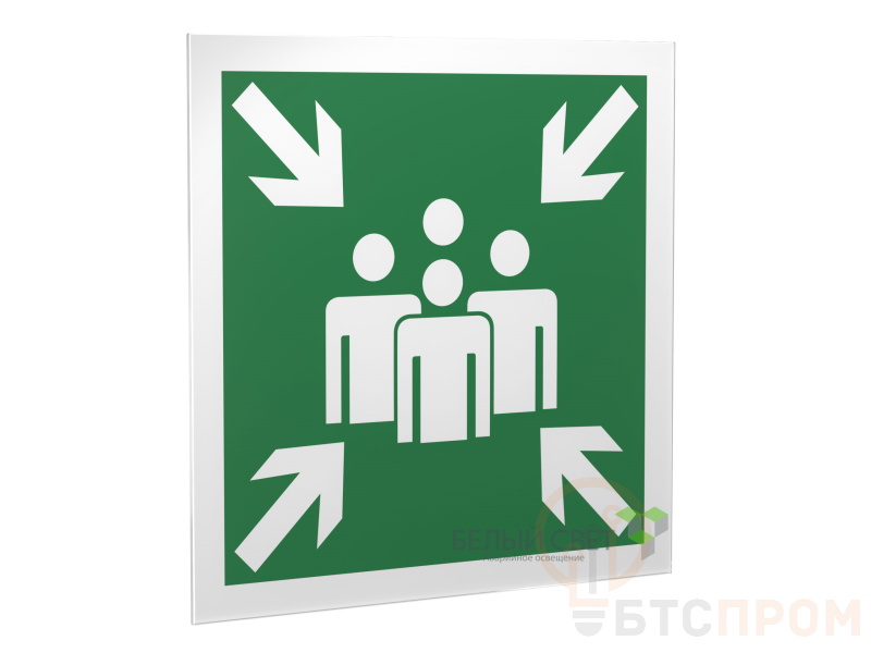 Знак безопасности "Пункт (место) сбора", габаритные размеры 324х324 мм, фактические размеры 300х300 мм, сигнальный цвет - зеленый, контрастный цвет - белый