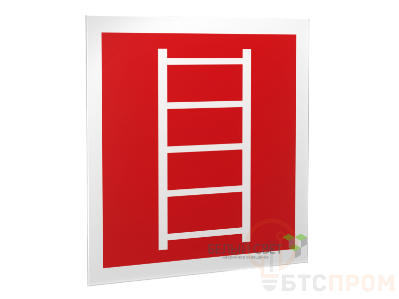 Знак безопасности "Пожарная лестница", габаритные размеры 324х324 мм, фактические размеры 300х300 мм, сигнальный цвет - красный, контрастный цвет - белый