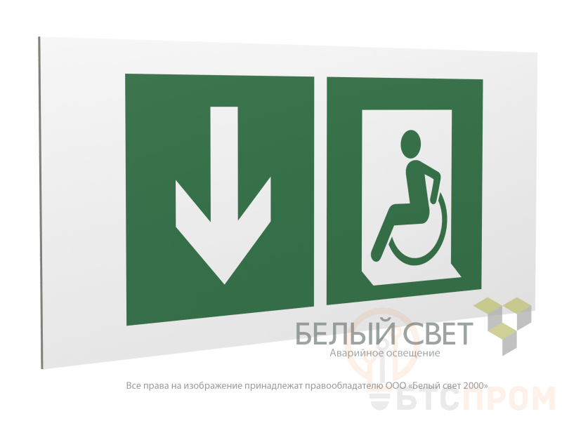 Знак безопасности PS-36164.E71 "Указ. двери эвакуац. выхода (лев.) для МГН" Белый Свет a28717 фото в каталоге от BTSprom.by