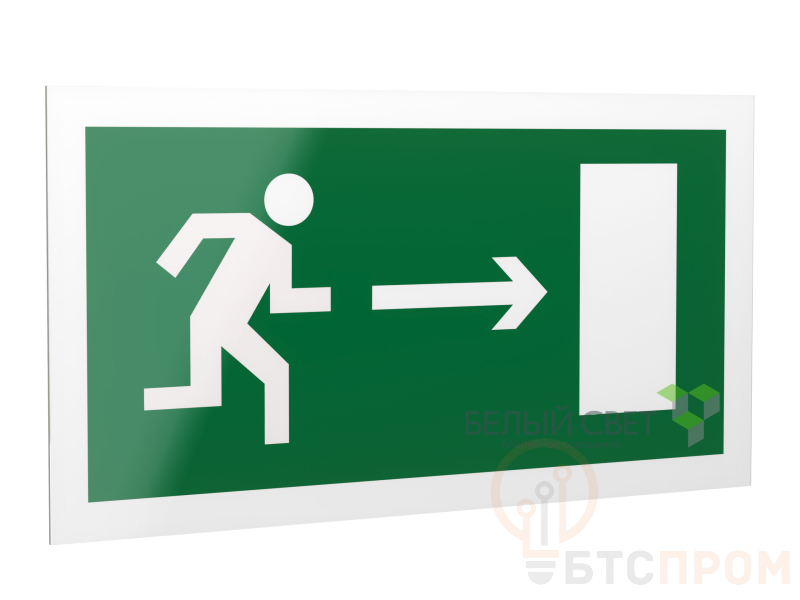 Знак безопасности "Направление к эвакуационному выходу направо", габаритные размеры 490х290 мм, фактические размеры 400х200 мм, сигнальный цвет - зеленый, контрастный цвет - белый
