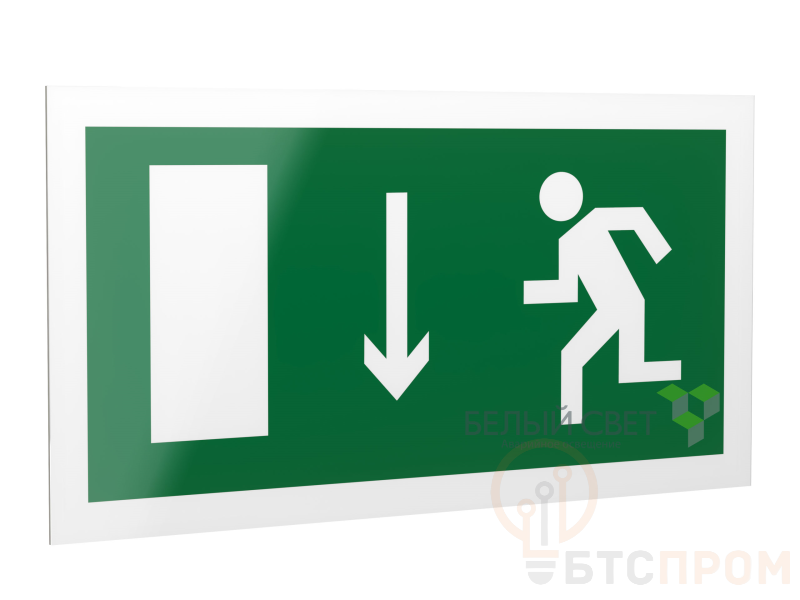 Знак безопасности "Указатель двери эвакуационного выхода (левосторонний)", габаритные размеры 490х290 мм, фактические размеры 400х200 мм, сигнальный цвет - зеленый, контрастный цвет - белый