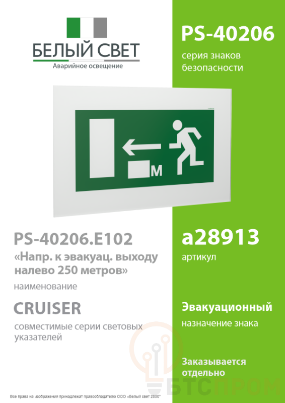 Знак безопасности PS-40206.E102 «Направление к эвакуационному выходу налево 250 метров» — это важный элемент системы ориентирования в зданиях и сооружениях. Знак предназначен для четкого указания маршрута движения в случае возникновения чрезвычайной ситуации.
